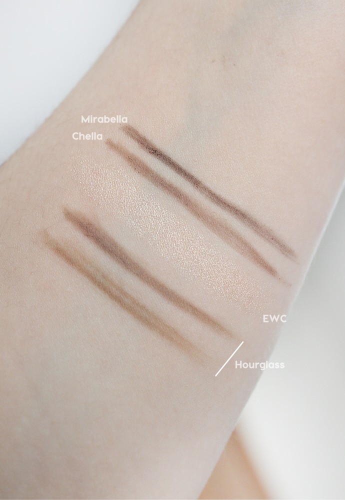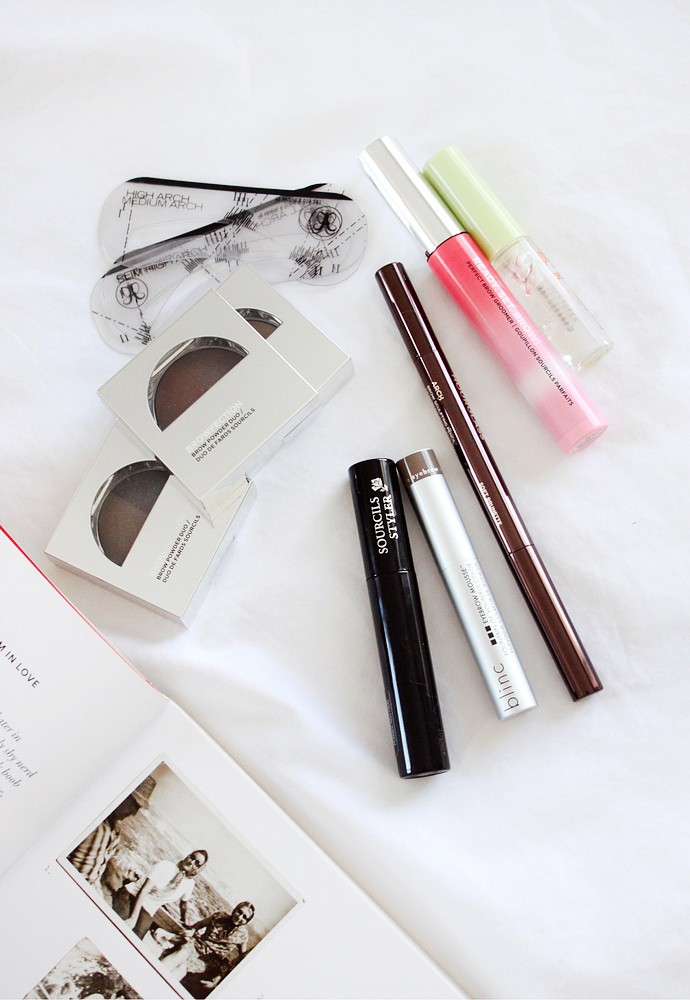 The survivors: Hourglass Arch Brow Sculpting Eyebrow Pencil, Lancome Sourcils Styler, blinc Eyebrow Mousse, ABH stencils, EWC Browfection Brow Powder Duos, EWC Ready. Set. Brow! Perfect Brow Groomer and PIXI Brow Tamer.