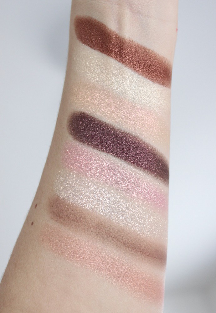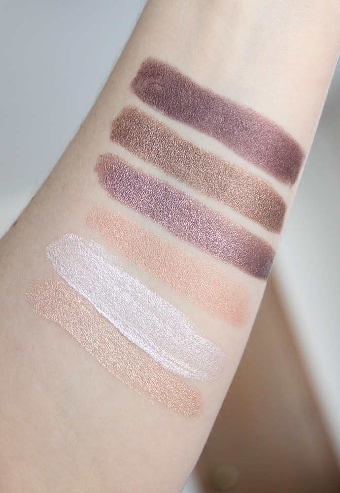 Swatches top to bottom: Jouer Creme Eyeshadow Crayon Renaissance, By Terry Ombre Blackstar 4 Bronze Moon, By Terry Ombre Blackstar 5 Misty Rock, Laura Mercier Caviar Stick Eye Colour Rosegold, L’Oreal Infallible Paints Eye Shadow 316 Cool Ivory.