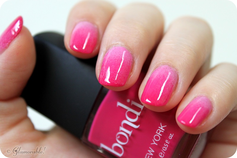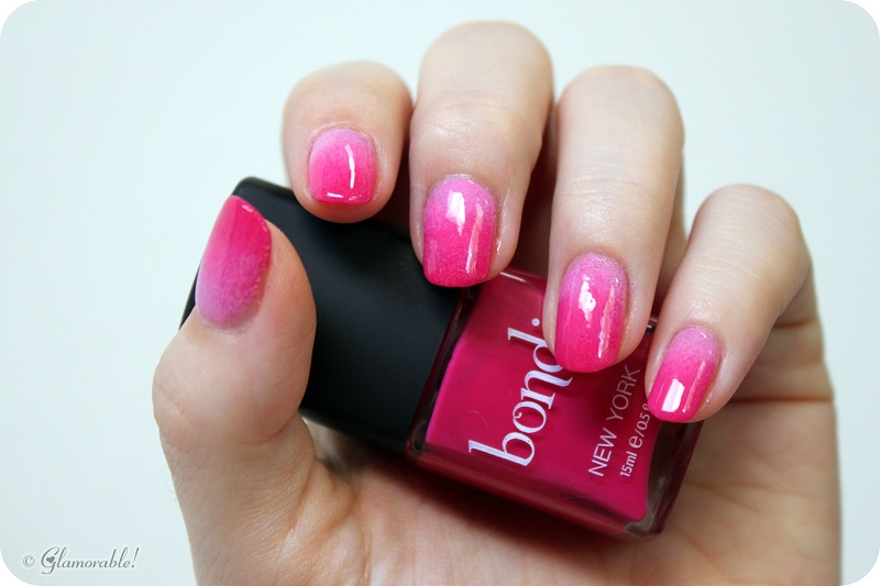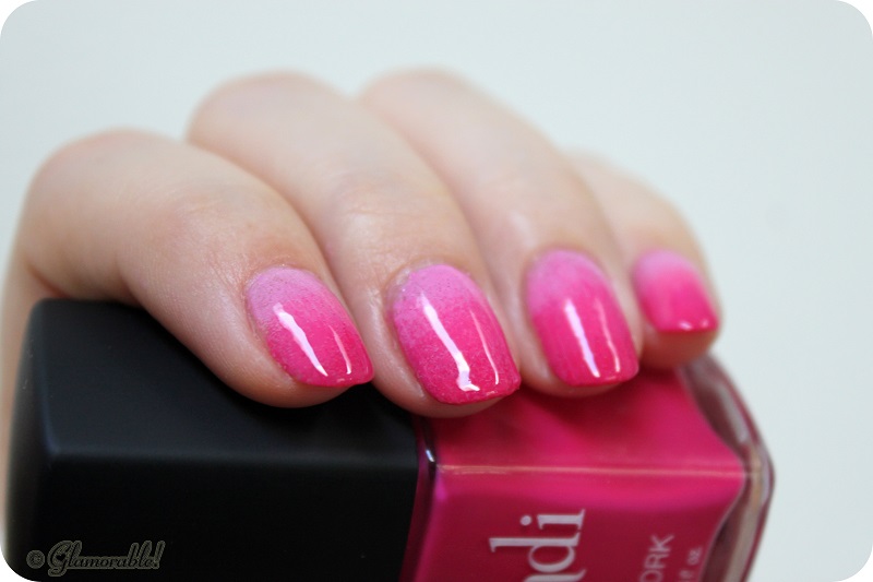 The theme this time is Gradient nails, and I realized that I didn’t feature pink polishes at all yet. So to change the balance a little bit for this manicure I decided to use essie Cascade Cool, essie Funny Face and Bondi NY Fuschia-istic.