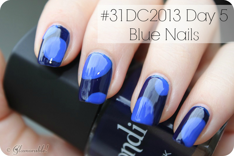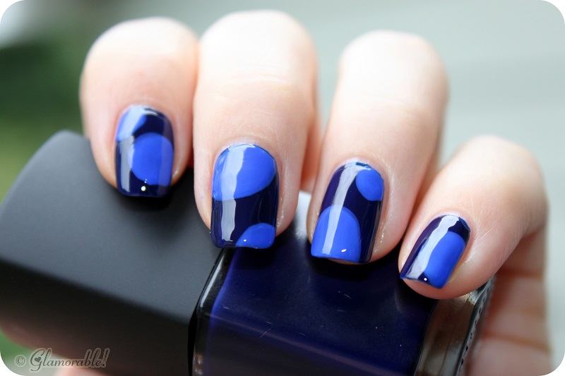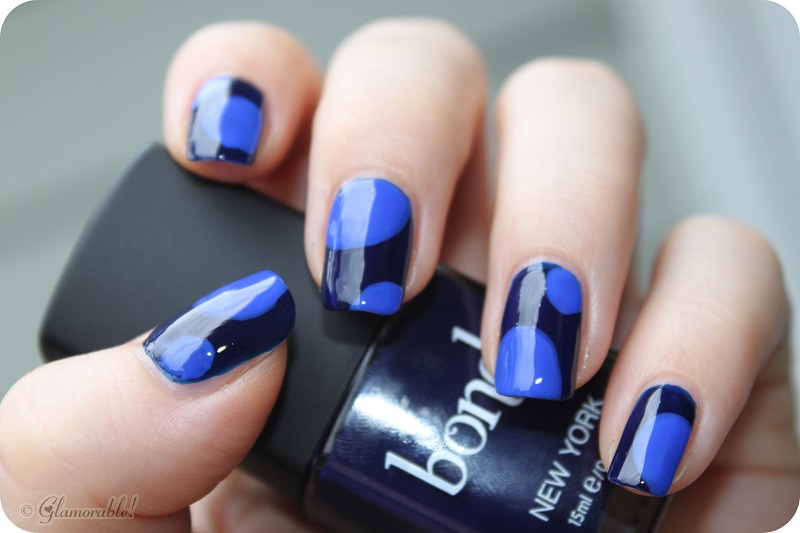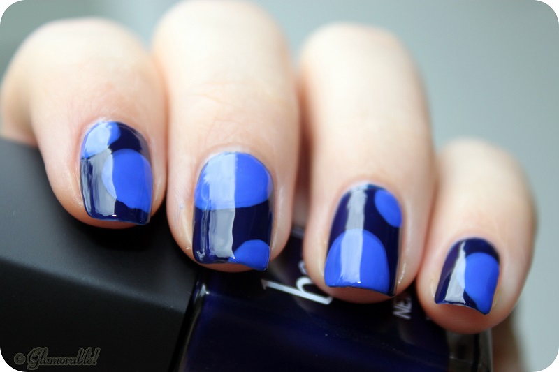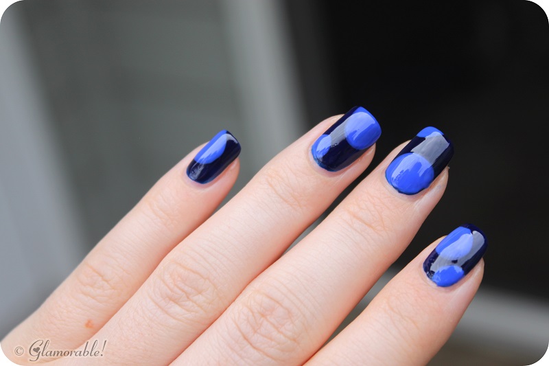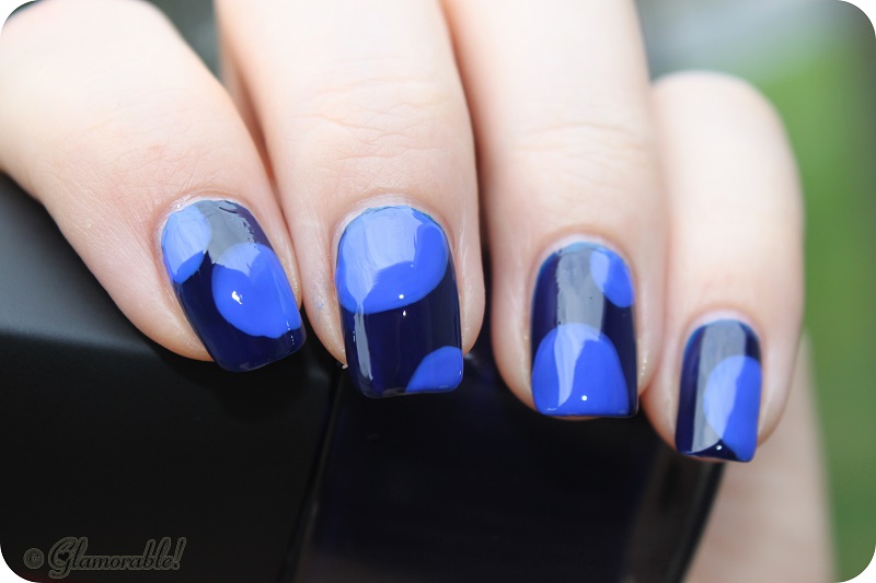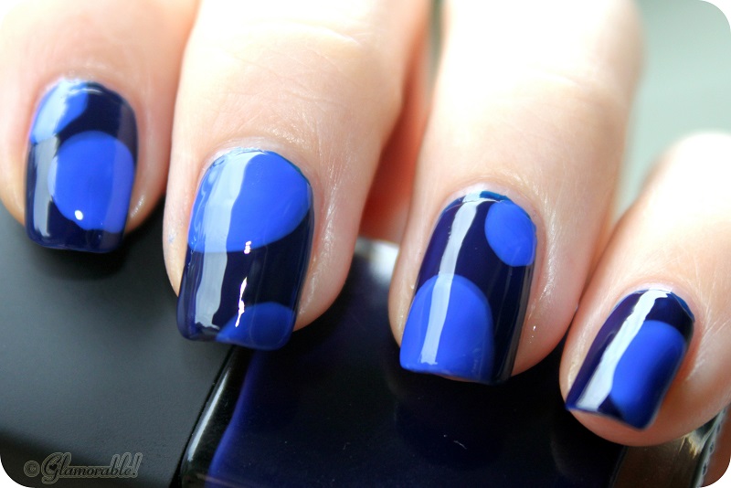 This is a very simple midnight blue + cornflower blue combo, using Bondi NY Midnight Mystery as a base with Color Club Insta-this freehanded circles. At first I thought about making a solar system manicure with planets on each nail, but I soon realized that I’m missing a couple of key colors in my collection, so this simple version is what I came up with instead. I think it’s a very lovely combo and would flatter most complexions.