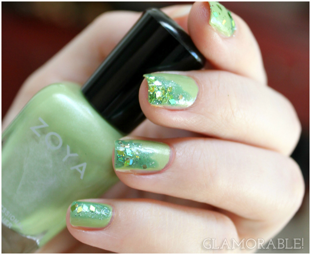 Polishes used: Zoya “Tracie”, Hope Girl Bling Nail Polish, KISS loose nail glitter.