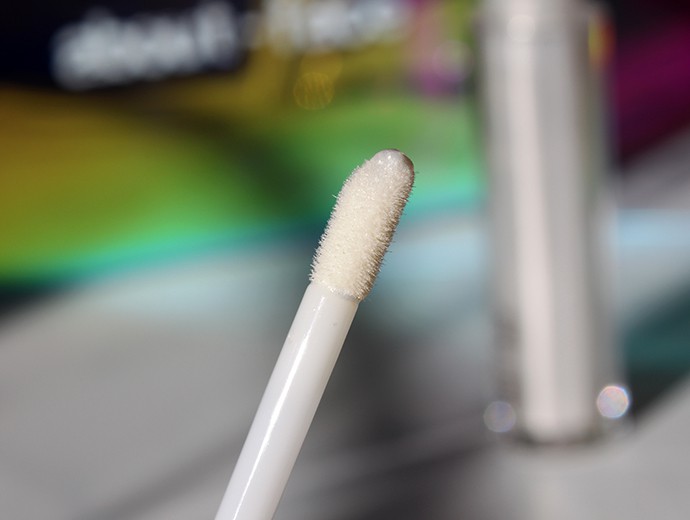 about-face Light Lock Lip Gloss wand is shaped like a thin, slightly stiff fluffy doe foot.