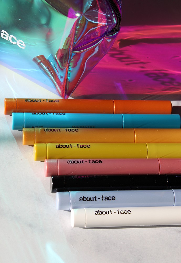 about-face Shadowsticks come in twist-up colored packaging and you can easily tell which shade you’re grabbing.