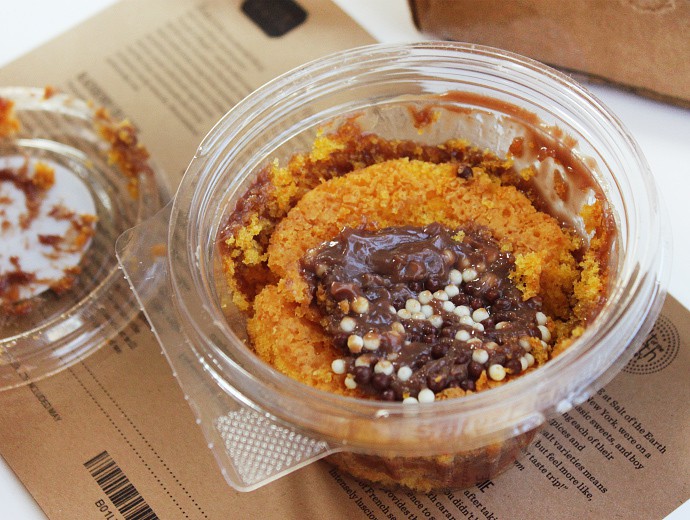 2 // Salt Of The Earth Bakery The OMGCB Brownie ($6 per 1 box) – I’m normally not a brownie fan, but boy was it delicious! The box contains 2 servings, so I enjoyed a square on two separate occasions. The flavor was wonderful – perfectly balanced, not overly bitter, and the sweetness was just right. The brownie had a thin and crispy outer layer, and a decadent chewy middle, it was almost like fudge.