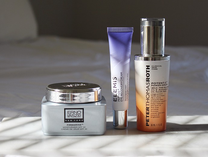 Most of the skin aging is actually caused by the UV rays, so I think it’s important to max out on sun protection and antioxidants during the day. For my AM routine I chose Vitamins C, E and F and a broad-spectrum SPF as my absolute must-haves.