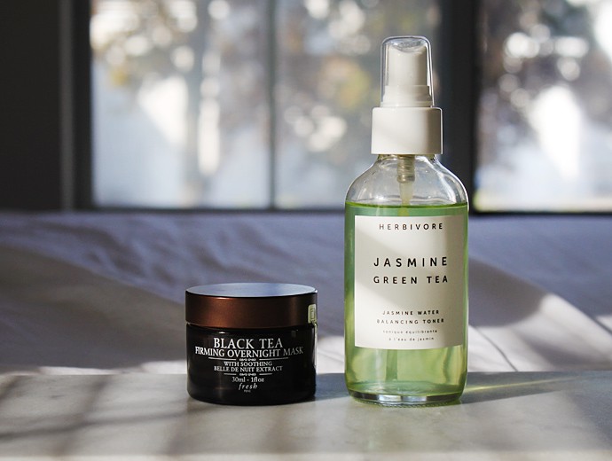 - Fresh Black Tea Firming Overnight Mask ($92) – The texture is absolutely heavenly, it’s kind of like a thick, stretchy paste, if that makes sense. It kind of envelops my face like a cocoon and I can almost feel it ‘seal’ in the rest of my skincare underneath. The mask is super moisturizing and my skin always looks plumper in the morning. The formula features a ton of various antioxidants, as well as peptides and HA.