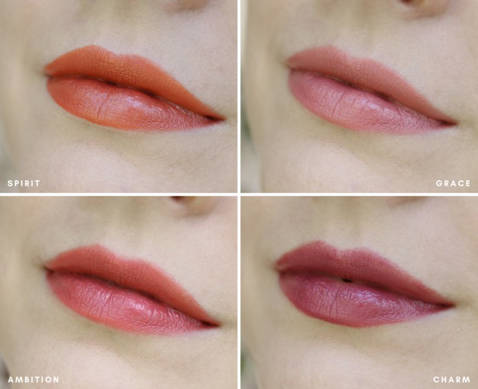 Swatches from L to R: Spirit, Grace, Ambition, Charm.