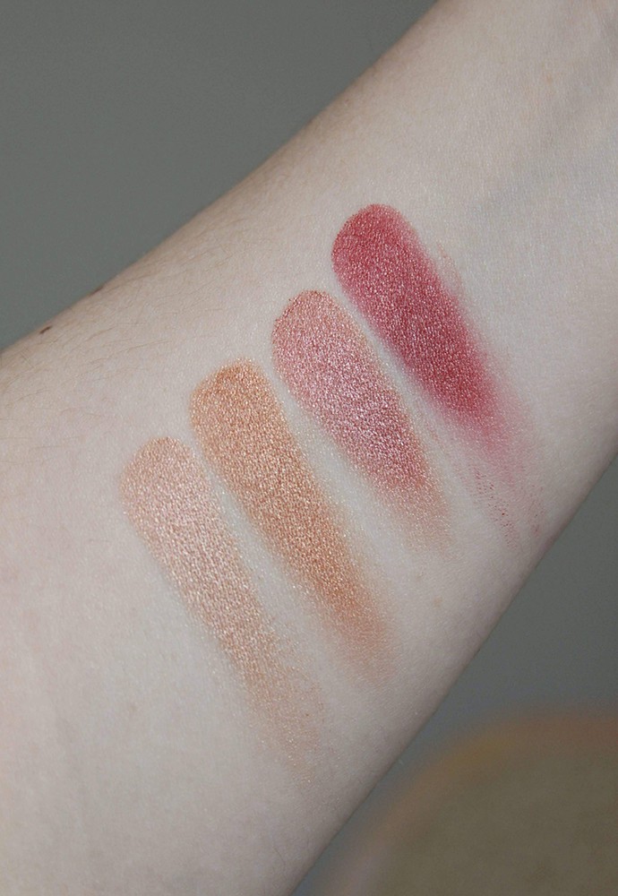 I had the opportunity to try both, but considering that I usually prefer warm-toned makeup, I thought it would be wasteful to request the other quad since I probably would never use it again after swatching. So even though I only have this one to show you, trust me, the cool-toned set is just as gorgeous with its plums and pinks.