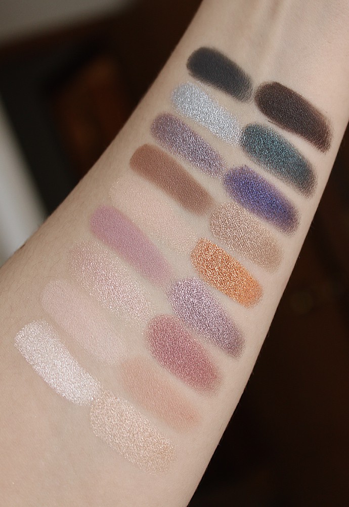 My experience with bareMinerals eyeshadows was always positive and I expected no less from this palette. The new Gen Nude formula is pretty impressive, and you can see it clearly in the swatches. Every shade offers rich color payoff – they all look so smooth! The swatches are single swipes on bare skin, which speaks volumes about the overall quality. Even the lighter shades are showing up nicely on my fair skin – usually, they just blend in and become nearly invisible unless I look closely.
