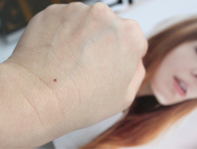 Coverage test: blended. Notice that the beauty mark on my hand is still keeping through, but all of the redness has been neutralized.