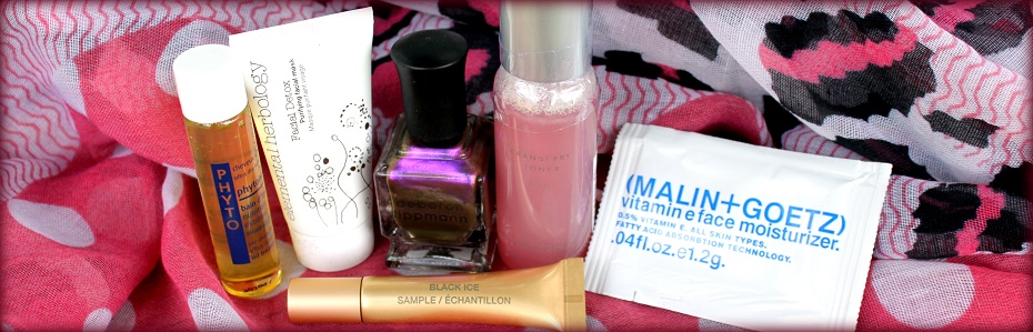 I just received my second Sample Society sample box, and again I’m extremely happy with what I got. Just like last month, they covered all bases to please everyone: a full-size nail polish for the nail fanatics, a mascara for the make-up enthusiasts, a toner and a moisturizer for the skincare lovers and of course a very nice hair treatment!