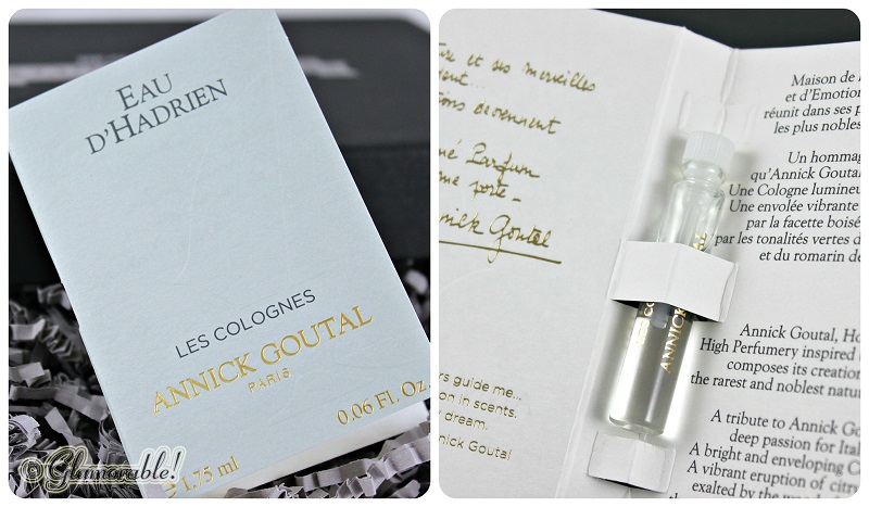 This was my first Sample Society box after a long break, and it didn’t disappoint. I already knew two products that would be included in all November boxes, so I kind of knew what to expect. I’m especially excited about finally getting to try one of the most coveted fragrances – Eau d’ Hadrien by Annick Goutal.