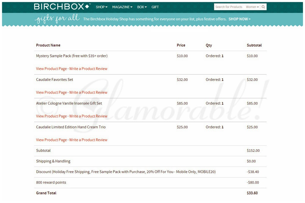 Now, I realize that a lot of us here know what Birchbox points are, but for those who don’t know, here’s how this works. Birchbox points are like cashback that accumulates as store credit, which you can use to purchase products and services at Birchbox.com. You can pay for a Birchbox monthly subscription, gift subscription, Limited Edition boxes and pretty much any product sold in the Birchbox store. 100 points = $10, but you can only spend your points rounded up to a 100, meaning you can’t spend 380 points if you have $38 worth of products in your basket, it will be rounded up and you’ll be charged 400 points for the order. Points expire one year after they’ve been earned, but you will receive email notifications reminding you to spend them.