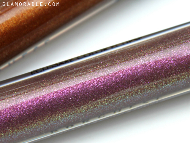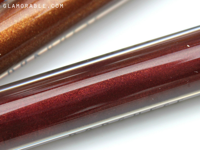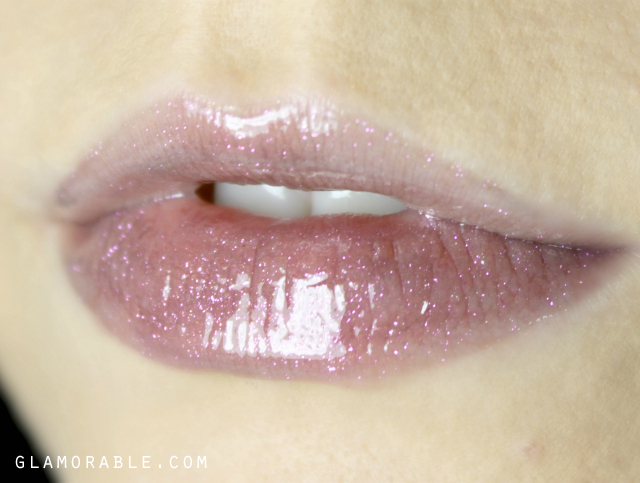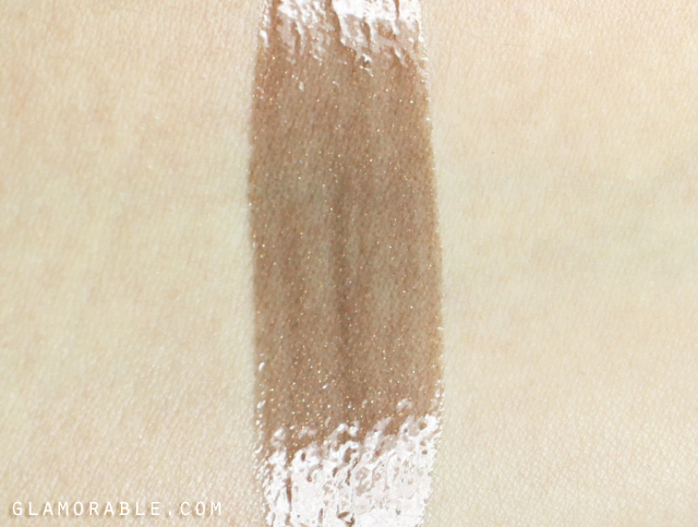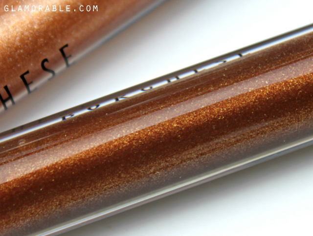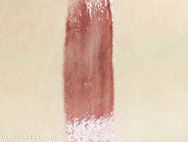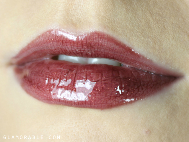 Brink is a neutral dark brown with a little bit of rose mixed in. It contains gold and pink particles, but it’s not nearly as shimmery as other glosses in the collection. It’s a really unique color up close, and neither wine nor oxblood would be accurate descriptions for it. It appears brown on the lips, and even though I normally don’t wear colors like that, I thought this one was very flattering and not old-fashioned at all. Brink has potential to look amazing on every complexion, from very fair like myself to very dark.