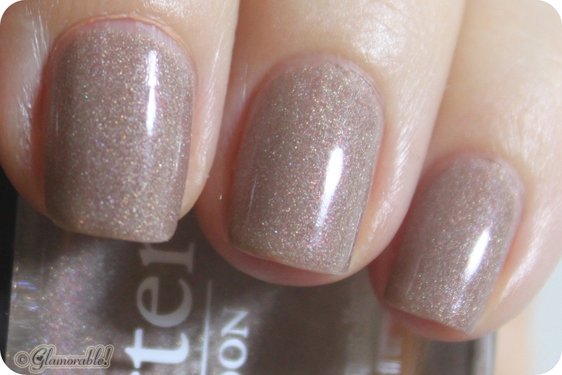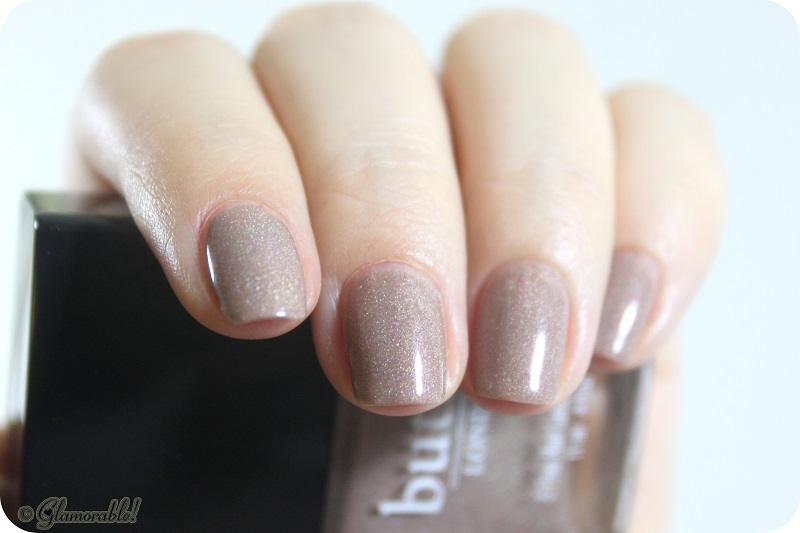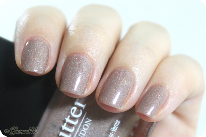 Holographic sandy nude with a subtle tint of pink – that’s my best description of this fantastic polish. The formula is on a thick side, but it goes on very smooth and spreads easily on the nail. For this shade two coats were enough for full streak-less opacity. The only known dupe to All Hail the Queen is OPI Nite Owl, which is still not a perfect dupe. OPI shimmer is definitely on the silvery side, while BL is filled with fine iridescent flecks.