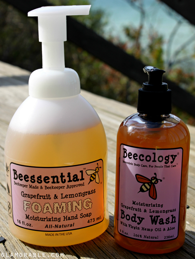 I had the opportunity to try a variety of products: lip balms, body wash, body lotion, and even foaming hand soap. I also remember buying their solid soaps, shampoo, and conditioner a couple years ago, and I liked those quite a bit. I’d like to note that all of Beessential skin, body, and hair care products feature natural good-for-you formulas that are gentle enough to use even on sensitive skin, as long as you don’t have allergies, of course 🙂