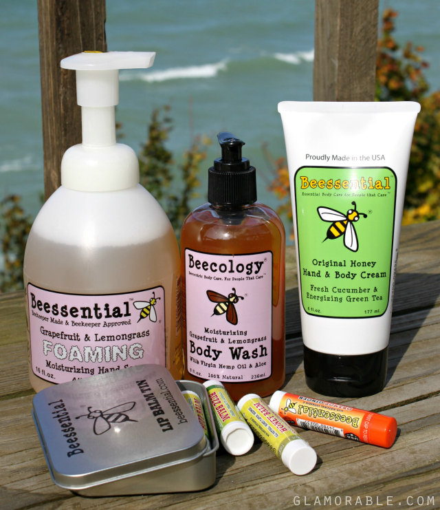 I had the opportunity to try a variety of products: lip balms, body wash, body lotion, and even foaming hand soap. I also remember buying their solid soaps, shampoo, and conditioner a couple years ago, and I liked those quite a bit. I’d like to note that all of Beessential skin, body, and hair care products feature natural good-for-you formulas that are gentle enough to use even on sensitive skin, as long as you don’t have allergies, of course 🙂