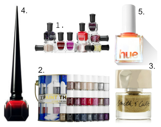1. Deborah Lippmann Party Mix Nail Lacquer Set [$55] – Cremes, shimmers, metallics, glitters: this set has a little bit of everything. Being a cult nail polish brand, this is a welcome addition to anyone’s lacquer cabinet.