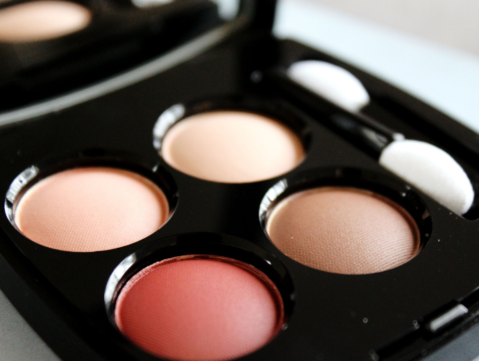 This Black Friday exclusive warm-toned quad consists of four matte colors, three of which are various shades of beige and one is a rusty, brick red. The formula is soft and smooth; and if you tried Chanel mattes before, then you are probably familiar with the way they kick off dust in the pan slightly. The first time I noticed this, I was worried that it might be a problematic sign, but the formula actually doesn’t create any fallout on the eyes – each color ‘sticks’ to the skin well enough, with and without primer.