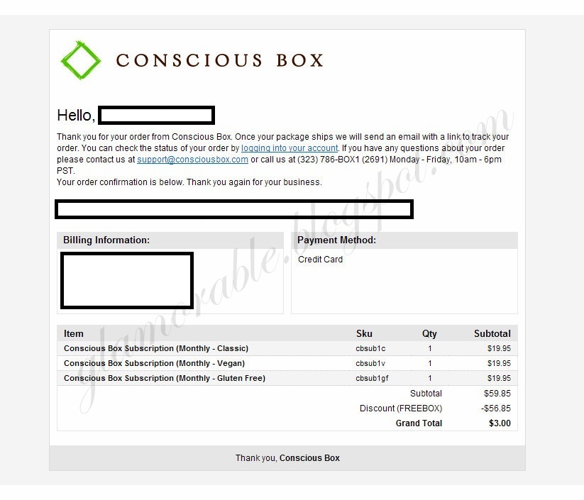 Register an account. You can use my referral link by clicking here if you want. Thank you!Now click here and add as many box varieties as you want to your cart. You have to add them one by one, can’t add them all at once, unfortunately. The coupon will work only once, so make sure you have everything you want in the bag before you check out.Then click here and apply the discount code BECONSCIOUS in the “Promotional Code” area on the right.Make sure the discount is applied correctly, and check out like you normally would.You can cancel your subscription at any time by visiting this page, then clicking “Edit” and Pausing the subscription. You will never get billed again unless you choose to unpause it.