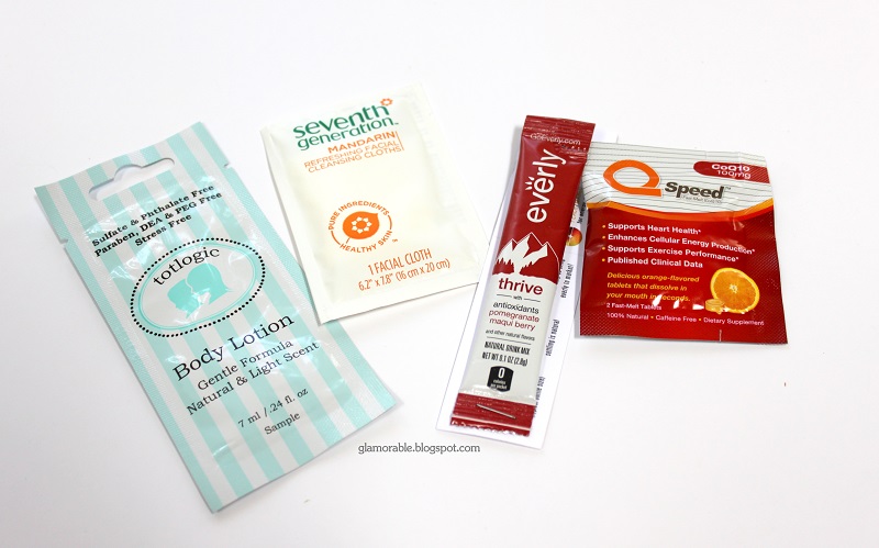 QSpeed CoQ10 Supplement, Everly Pomegranate Maqui Berry Drink Mix, Seventh Generation Mandarin Facial Cloths, TotLogic Body Lotion