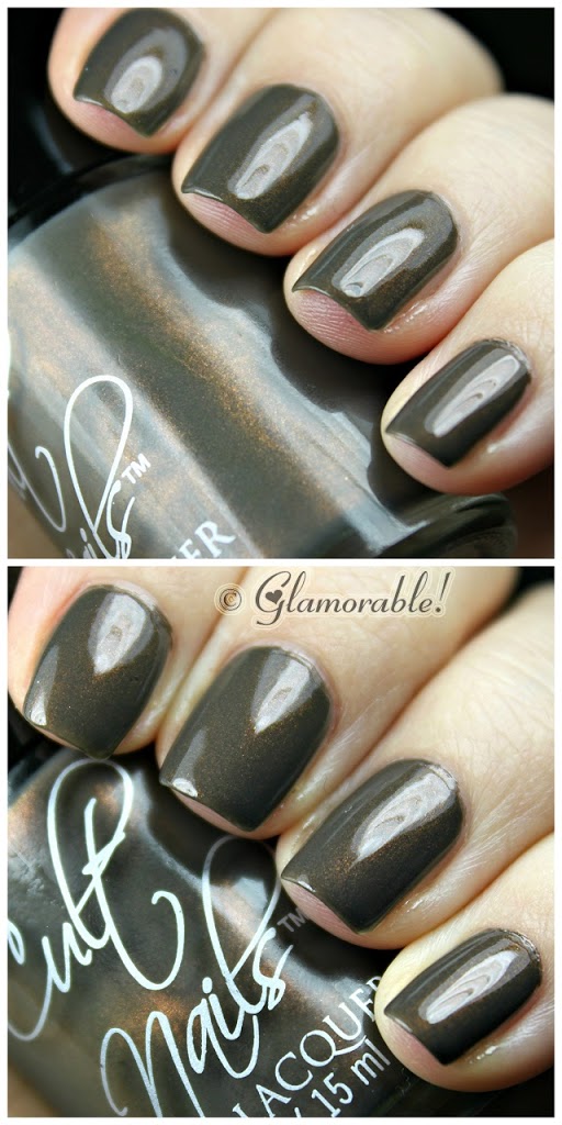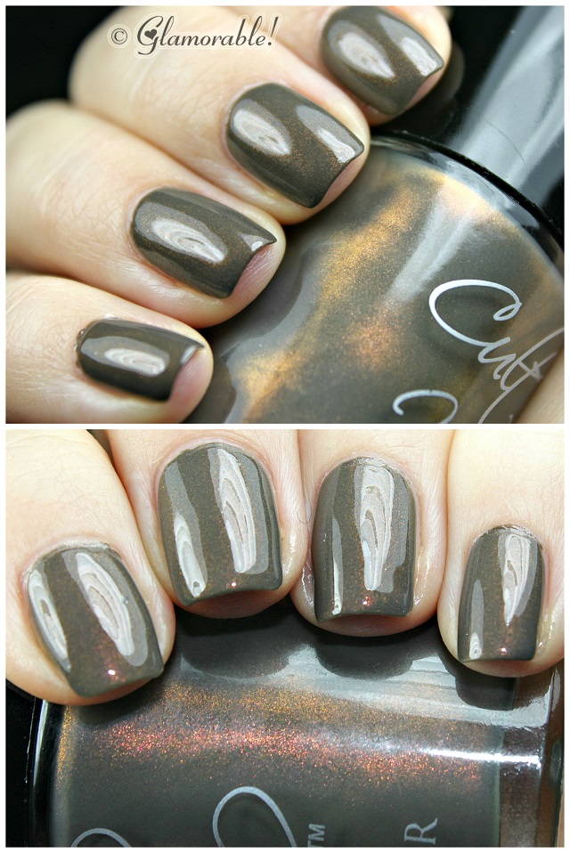 And last but not least, my favorite polish in this collection is Midnight Mist – an unlikely combo of ultra fine gold and ember shimmer in green-taupe creme base. It has a thinner consistency than the other two, so I needed three coats, but I just can’t take my eyes off of it. It’s unlike anything I own and I definitely never saw anybody else wear a similar color.