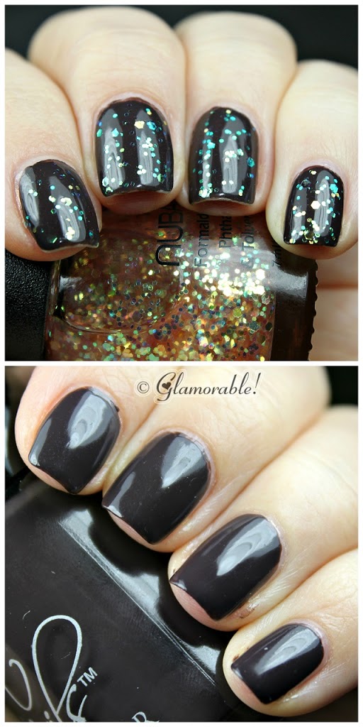 I wore this color for a few days and topped it with a random Nubar glitter after I noticed some minor tip wear. I think it will look great with just about any glitter on rop.