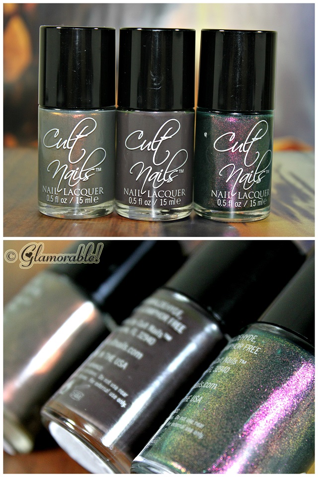 A few weeks ago I participated in a contest on Cult Nails Facebook page and was randomly selected as a winner of their Midnight Masquerade Limited Edition Fall mini-collection. There were only 500 sets made, and I am now a proud owner of one of them!