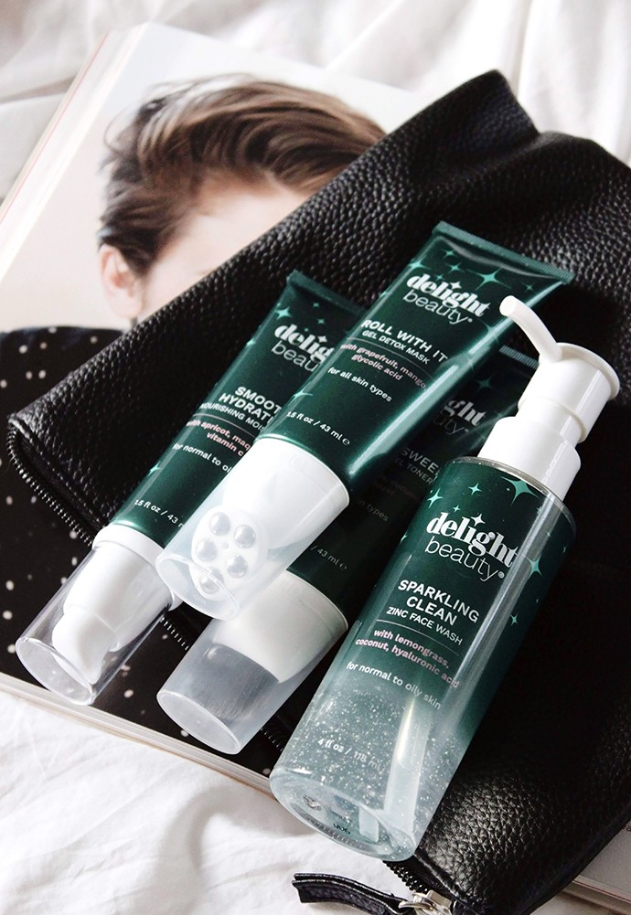 Delight Beauty is the mission. The company believes that daily skincare should be a delight – streamlined, uncomplicated, and fast but also approachable, which sounds pretty awesome and just what I need right now. Every product is carefully developed with its own unique feature – a bit of sparkle, a soft brush applicator, a fresh zingy scent, a soothing massage tip – because who said that a quick skincare routine can’t also be fun?