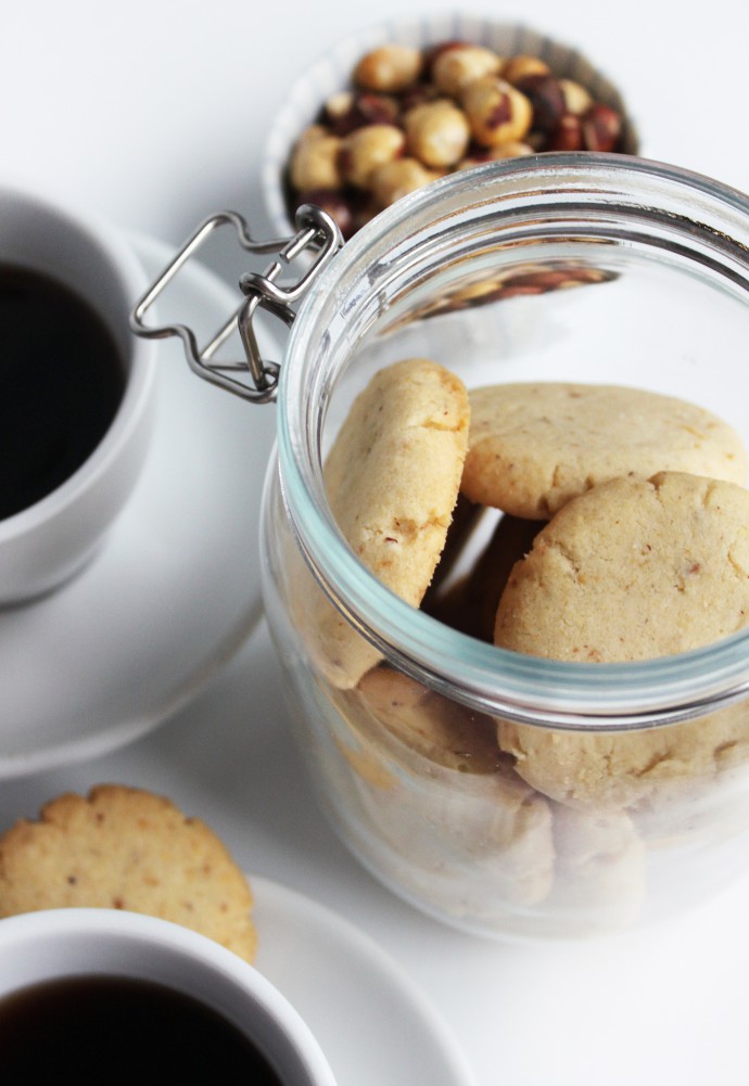 Once the cookies are done baking, just leave them on a wire rack to cool off and enjoy within the next couple of days. Unfortunately, they don’t keep very long, even in the fridge, and start tasting a bit off, so I don’t recommend making them in advance, but they are still well worth the effort because the delicious hazelnutey flavor and the sugary sweetness make the perfect pairing with coffee or afternoon tea. This recipe is super comforting and I love making it from time to time as a special treat.