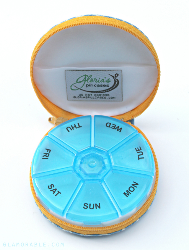 Gloria’s Zip-A-Round Travel Pill Cases come in dozens of patterns and materials, so I had a hard time choosing just one. The selection is so wide, it’s easy to find something for everyone: boys, girls, adults, seniors… I ended up with Citrus Blue Flower, its beautiful blue, white, and orange pattern stood out as one of my top picks the moment I loaded the website.