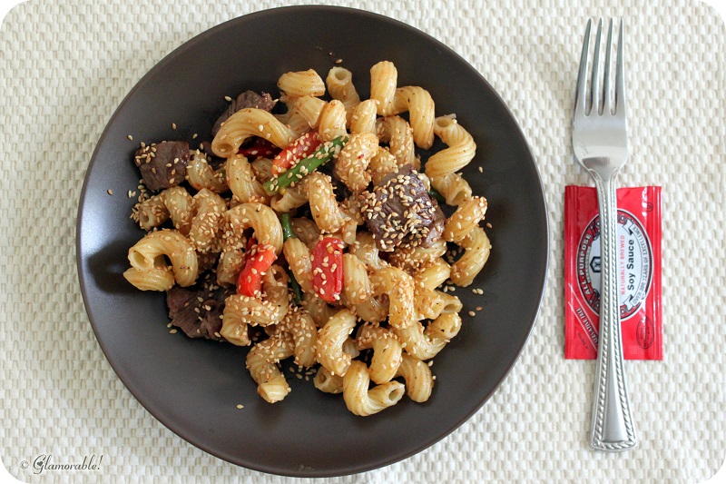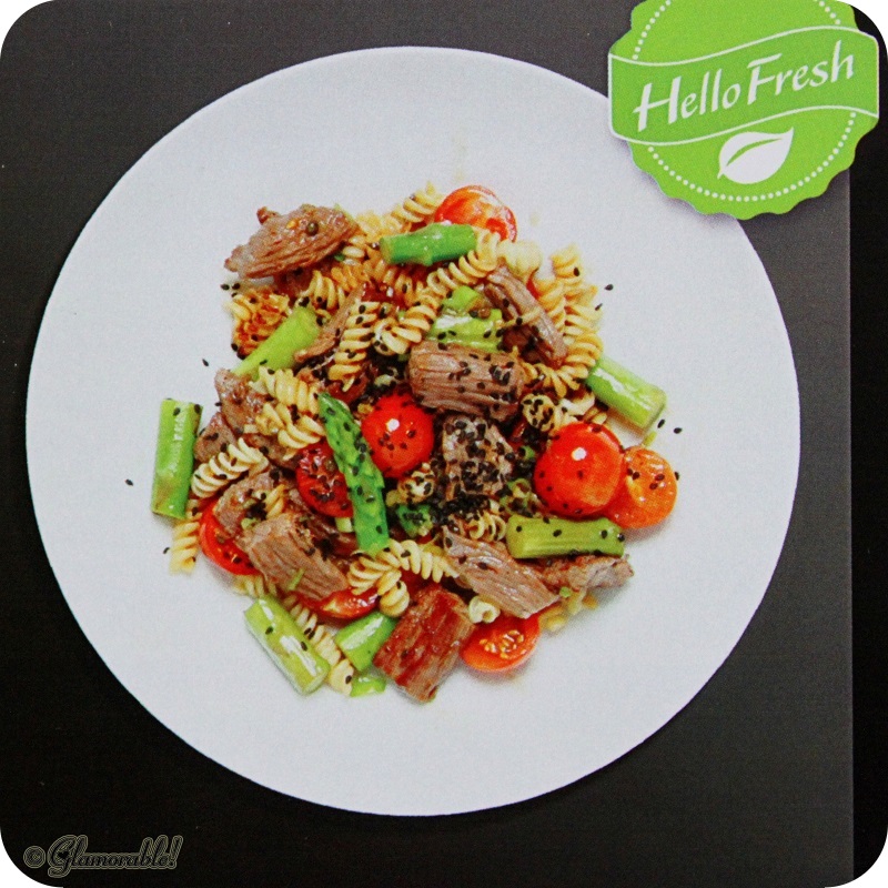 Compared to the pictures on the recipe card, my plate looked a little different. They sent another type of pasta, and I also decided not to brown the sesame seeds, because I don’t eat them when they’re charred like that. I didn’t really like the other two recipes – Pasta with Chicken Meatballs and Tilapia with Peaches, so I can’t justify subscribing to this service on a weekly basis.