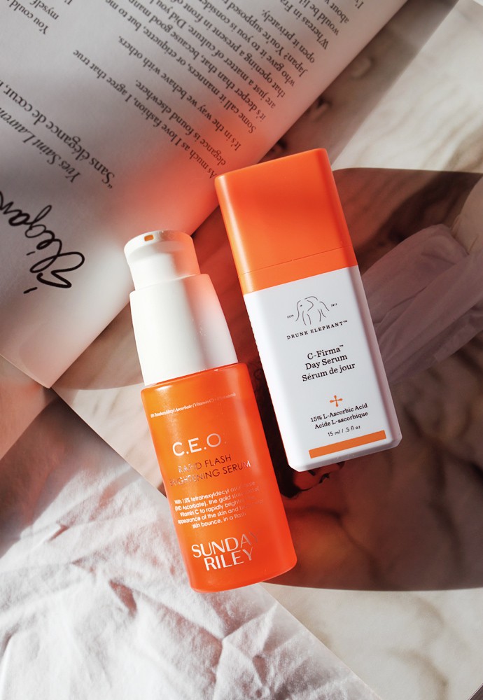 1 // Drunk Elephant C-Firma Day Serum ($80) – I bought a couple of those cute little discovery kits at Sephora, so I actually had a chance to try a variety of DE products. I finally have some empties to report on, including this Vitamin C brightening serum. In my experience, it does work well for brightening for the first month or so, but even inside the airless pump packaging the product oxidizes wayyy too quickly. I can almost guarantee you that you won’t be able to use up the entire bottle before it turns from light amber to a brownish shade [example of fresh C-Firma vs oxidized]. From what I read so far, it seems that if you use a product with twice-oxidized Vitamin C in it, it can be potentially damaging to the skin. I still need to do more research on that, but it does seem plausible.