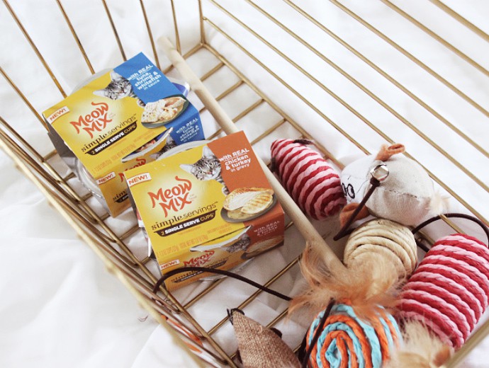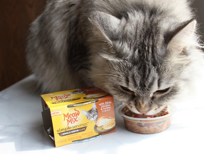 3 // FOOD VARIETY. Cats need to eat a variety of proteins to stay healthy. In the wild they would eat rodents, birds, bugs, lizards, and sometimes fish… Which is why I buy many different kinds of cat food for her to enjoy, and to make sure she doesn’t get bored eating the same thing every day. Last week while shopping for groceries at Walmart I bought some Meow Mix Simple Servings with Real Tuna, Shrimp & Whitefish in Sauce and Simple Servings with Real Chicken and Turkey in Gravy for her to try, and she’s loving both kinds! These new premium single-serving cups with real seafood and poultry are perfectly portioned for maximum convenience. If you don’t like having leftover wet food sitting in the fridge, you should give Meow Mix Simple Servings a try.