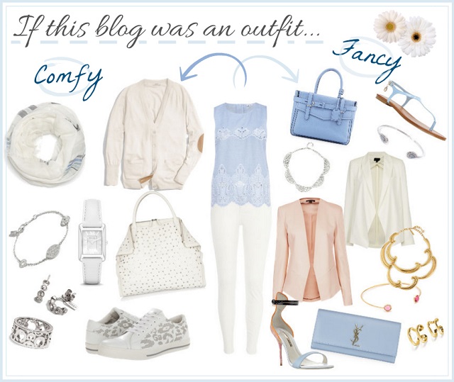 This spring I’m madly in love with soft blue shades, in fact, light blue+white combo is probably my favorite color duo to wear. Ever. I even make my hubs buy shirts with light blue/white stripes, because I love it so much. This outfit can be easily dressed up or down, and all of these items are things that look exactly like something I already own. So yeah, this one is definitely “me” 🙂