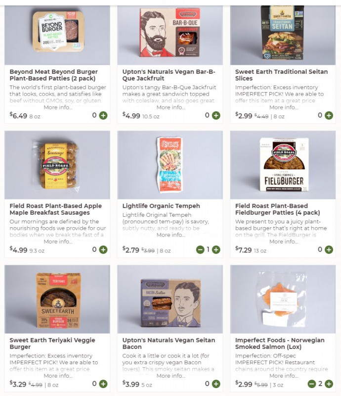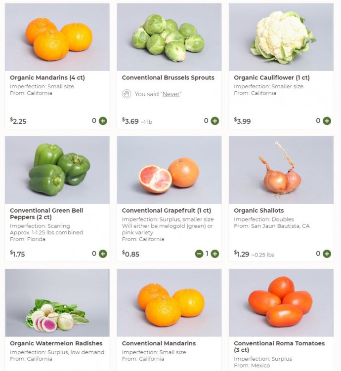 In a nutshell, the service delivers a variety of fresh produce, proteins, and pantry items that are deemed “imperfect” by the food industry. An apple that is smaller than the standard size, a carrot with an extra stem, a scarred avocado, a potato that has a few bruises here and there. Imperfect Produce also offers overstock items that would otherwise end up in a landfill, as well as a variety of pantry staples with no defects at a reduced price just because. Price-wise, think Aldi, but cheaper.