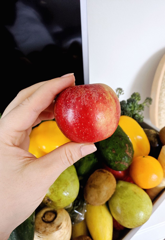 This apple was deemed imperfect because of its size. Still perfectly delicious though!