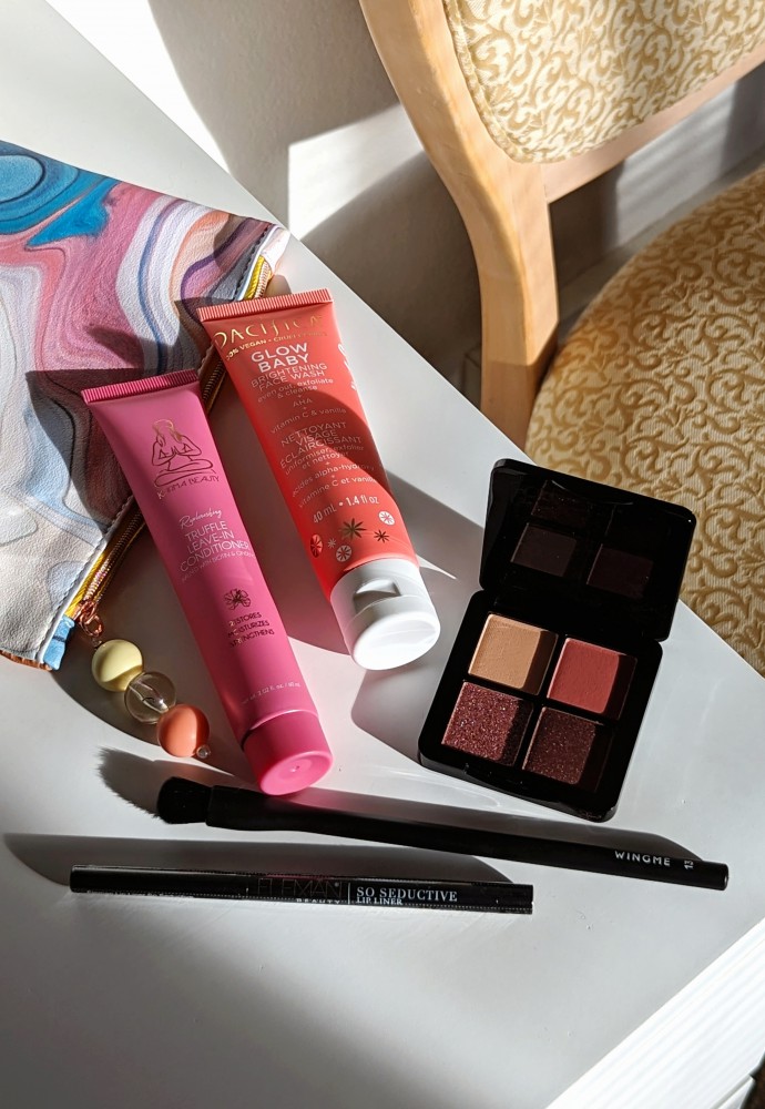 Overall, I think this is a solid value bag for $13. I was especially happy about the makeup brush, which has a very unique shape unlike anything else I own, and the quality is so good! It reminds me of NARS brushes with that sleek matte base and soft edges. The other two standouts for me were the Pacifica cleanser and the Shades by Shan eyeshadow quad. I will 100% bring the cleanser on my next trip, it’s a good one! And the eyeshadow quad, despite having some issues with the glitter fallout, has a lovely color story for spring. The colors go well together, and if I avoid the glitter pan, I can make it work just fine.