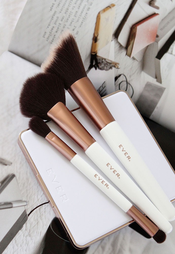 Ever Makeup Brushes: Dual Ended Eye Shadow Brush, Cheek Brush #1 Bronzer, Cheek Brush #2 & 3 Highlight & Blush.
