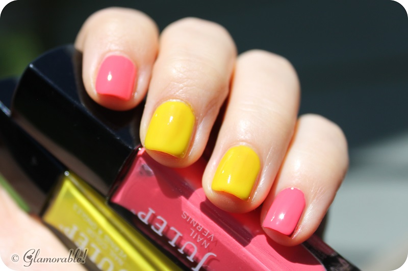 Both Nikki and Natalie had very goopy, streaky formulas, and I didn’t like that part at all. But the colors are bright and cheerful, which is perfect for summer. I have an overload of neutrals, so it was refreshing to receive something out of the ordinary for a change. Nikki is described as electric highlighter neon yellow , and Natalie is a chic retro honeysuckle pink.