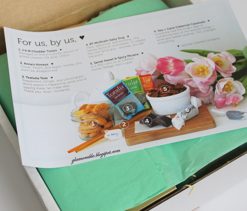 This month’s box contents are focused on celebrating the International Women’s Day which is observed worldwide on March 8th. In order to support the women entrepreneurs all treats included in the March box were crafted by women-started companies.