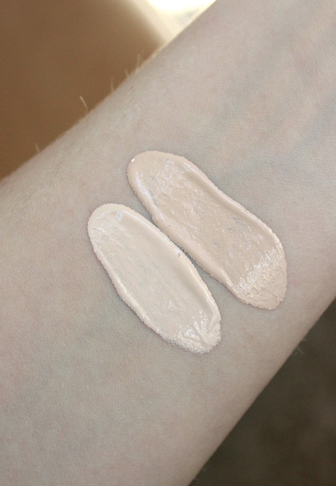 L to R: Lancome Teint Idole Ultra Wear Foundation 090 Ivoire N + 100 Ivoire N (Swatches)
