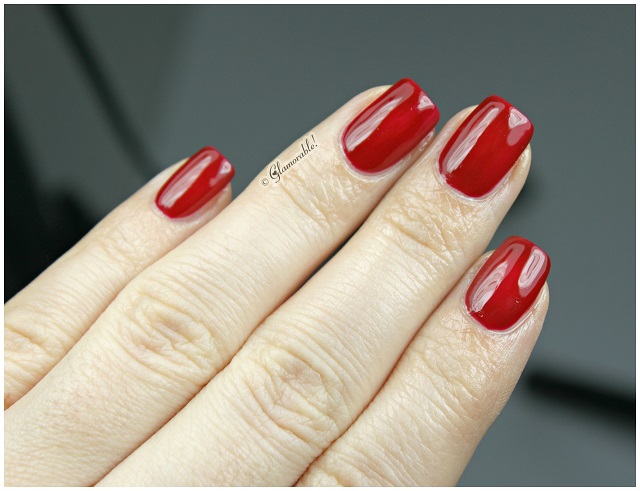 Next up is Red Lodge, and as you know, I’m a bit indifferent to reds. I understand that they are classic and everything, but I feel that I am still young enough to goof around with other colors before timeless picks like red polish will look more appropriate for my age. I couldn’t find any information about this shade online, so going by my personal description, this is a medium cranberry red. The formula of this one is more on the streaky side, and slightly runny, so it might even pool over the cuticles if you’re not careful. I needed at least three coats to get a nice, even color, but the result was not fully opaque, because I could still see the tips peeking through. The wear is really nice, though, and just like Cocoa Cabana, lasted a full week without chipping. The polish did change color very slightly and became a tad bit darker, but not enough to get concerned about it, as most people probably wouldn’t even notice that change.