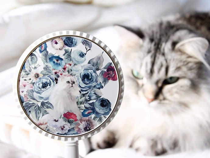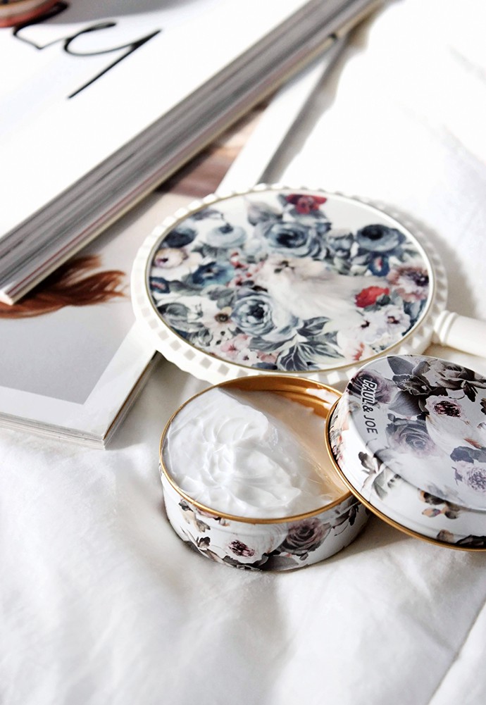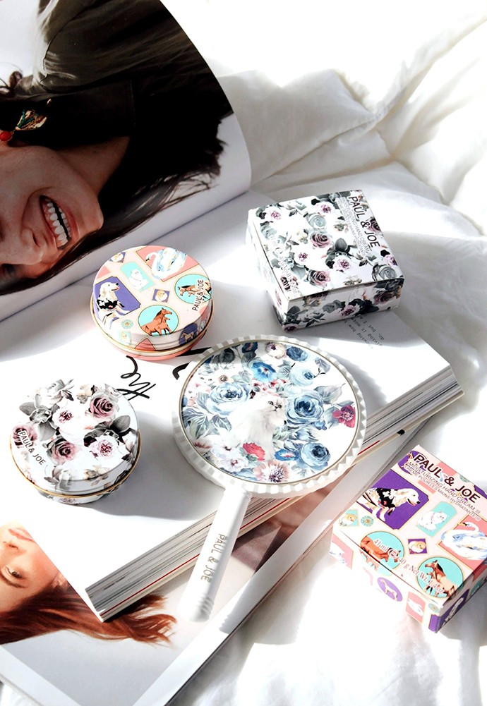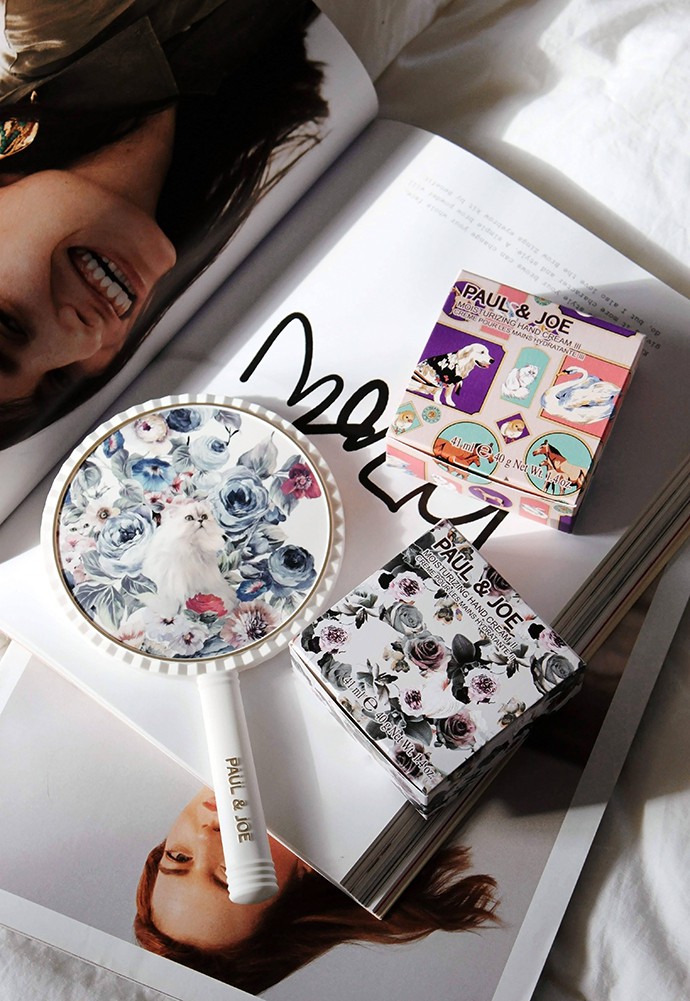 I know I talked about Paul & Joe Beaute very recently, but I couldn’t wait to also show you some of the current Limited Edition goodies that were released for the holiday season this year. We’re talking about two new Paul & Joe Moisturizing Hand Cream ($16) tins and a cute floral cat hand mirror that adds a fun touch to any beauty vanity.