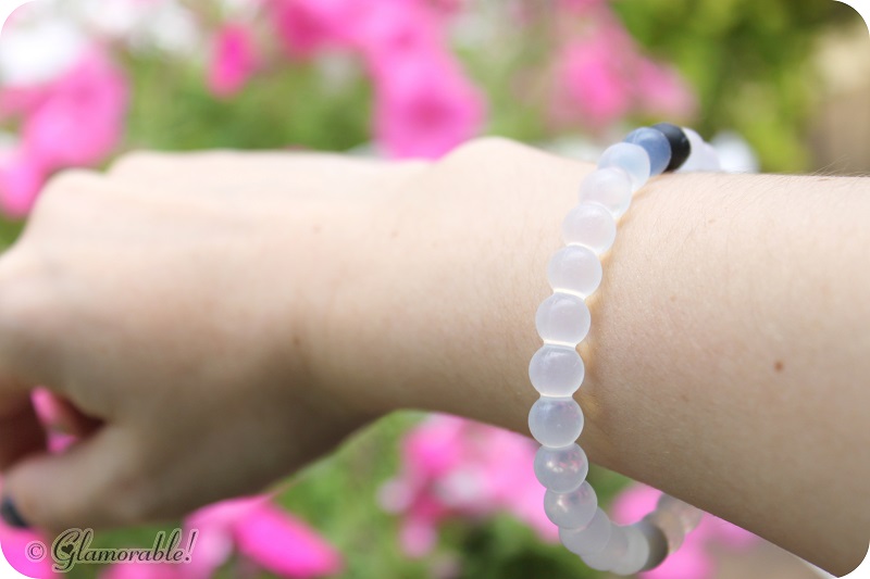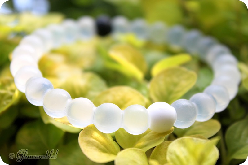 The bracelet is made of high quality silicone beads, so it’s essentially waterproof and can be worn to the pool, beach, gym, in the shower etc. It comes in three sizes: Small, Medium and Large. As you can see, I got the large one, and I really don’t remember if I could pick my own size or not when I agreed to review it. I have tiny 6″ wrists, so of course it was too big for me, but I still enjoyed wearing it because it doesn’t slip off easily.