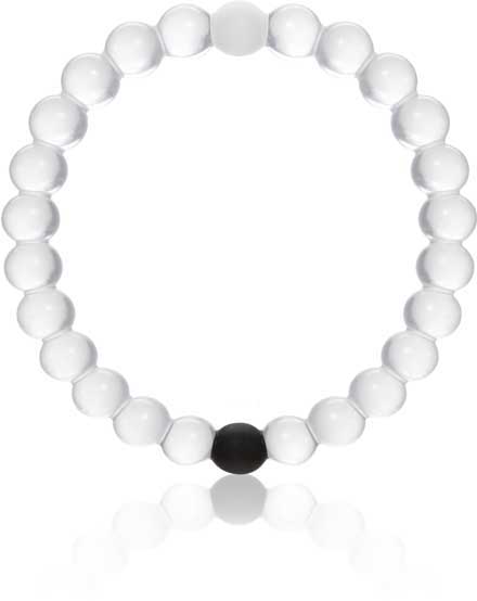 • The white bead contains water from Mt. Everest, the highest point on Earth, and some of that water is fused into the silicone mixture itself, which ensures the water is always in the bead in some form, since the material is porous and the water will eventually evaporate. It represents Humility, and reminds us to be modest even when we are on top of the world.