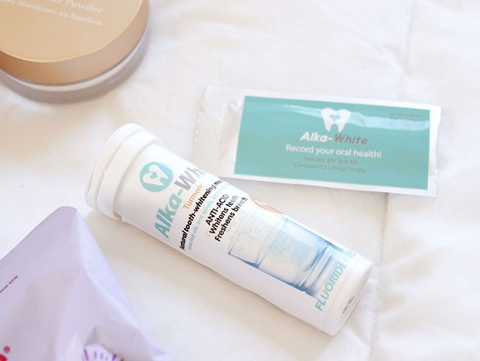3 // Alka-White The Alkaline Oral Cleanse ($9.99) – I am no stranger to pH, as you may know, which is why I found this little kit so interesting. I’ve been testing my skincare and even body fluids for pH for various reasons, so I know that every area of your body needs to have a certain pH level to perform at optimal levels. This kit comes with a set of pH strips and tablets made with coconut oil and turmeric to balance your oral pH levels. I don’t know if you heard of oil pulling, but those two ingredients are often used to promote oral hygiene.