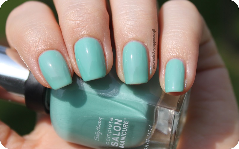 Oh my, I just had to make another Mani Monday post for this! Earlier today I received my Allure Summer Beauty Bag and one of the items in it was this gorgeous nail polish by Sally Hansen. I didn’t think about the color when I first saw it in the bottle, but after my nails were dry, I realized that it’s an almost perfect Tiffany blue! I was so excited I went a little swatch crazy, so here’s the result of that 🙂