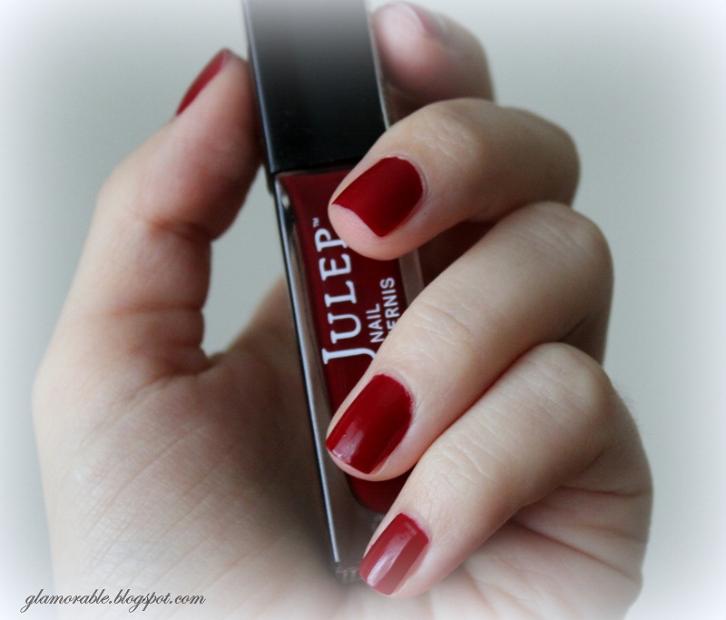 This week I’m sporting Julep in “Demi”, in person it looks like very dark red with blue undertones and creme finish. The color also seems to change under the sunlight – it becomes bright crimson red! The formula is kind of meh but it dries pretty fast compared to most other polishes I own. I admit I’m not a nail polish junkie so I can only comment on the quality compared to what I’ve tried so far [which is not much]. My main problem with this polish is that it chips too quickly unless I maintain my manicure with an extra layer of top coat every day which is the main reason why I don’t wear it much. It is a very pretty color though.