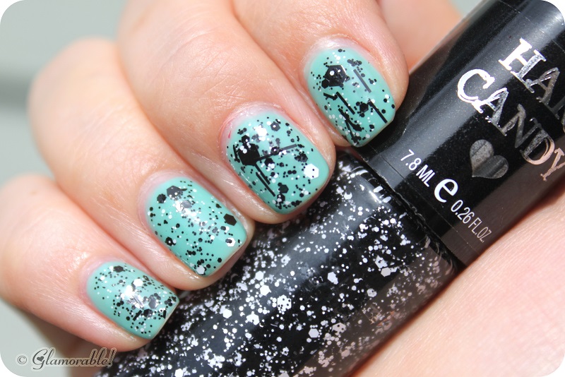 Haha, in the title I thought you were telling us the Hard Candy Black Tie polish was optional! I really love this look, though. Normally I’m not one for chunky glitter, but maybe it’s the combo with the light blue or the variation in the black glitter polish. I don’t know, but I really like it!